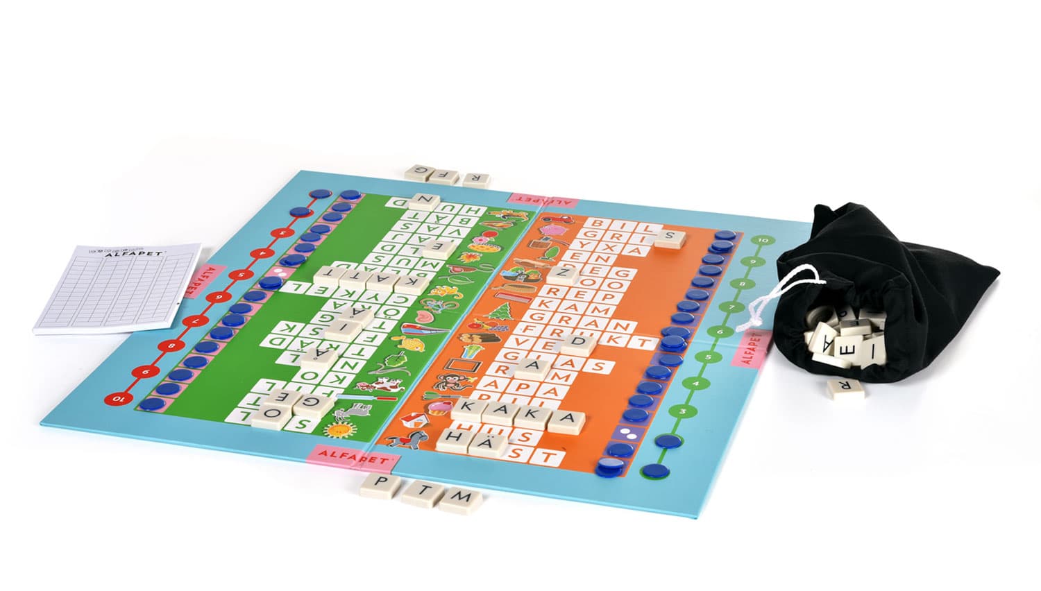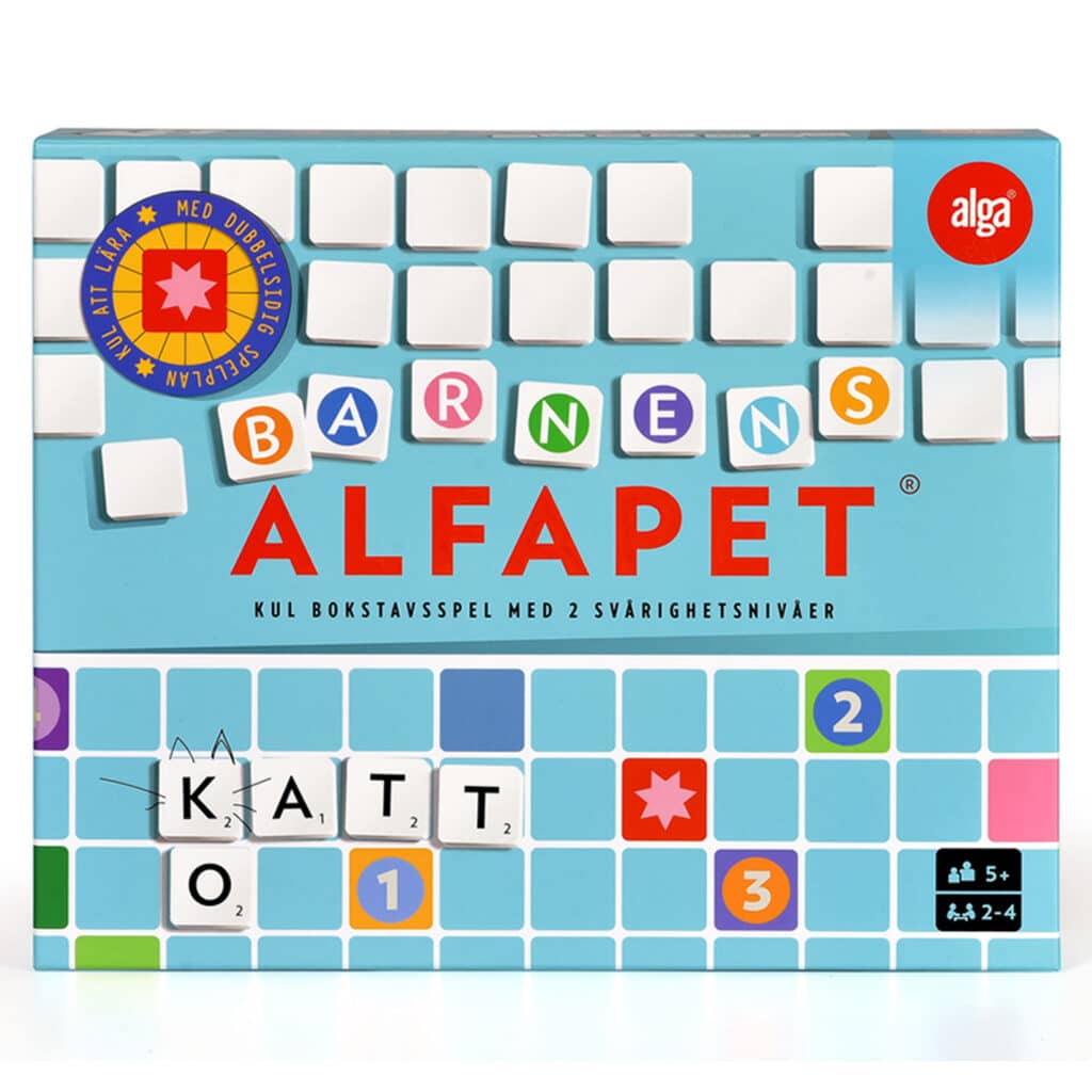 Barnens Alfapet innehåller två roliga spelvarianter – ett bokstavsspel och ett korsordsspel. Båda spelen finns på var sin sida av samma bräde. På den enkla varianten behöver man inte kunna stava eller läsa. Ett kul och samtidigt lärande spel att växa med. Klassiker som passar till alla bokstavshungriga barn!