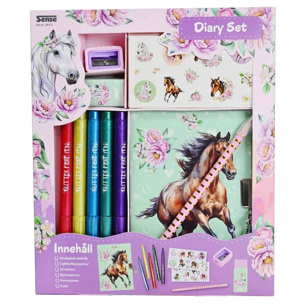 Sense Häst Dagboksset är en fantastisk present som inspirerar till skrivglädje och stärker barnets egen röst. Ett tryggt och glittrande rum för tankar, känslor och drömmar.