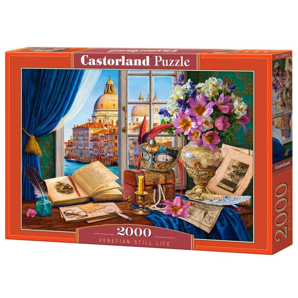 Fördjupa dig i Venedigs klassiska charm med “Venetian Still Life”, ett 2000-bitars pussel från Castorland. Detta eleganta motiv fångar essensen av den venetianska kulturen genom en noggrant arrangerad still life-scen, vilket gör det till ett perfekt val för konstälskare och pusselentusiaster som uppskattar detaljerade och sofistikerade motiv.