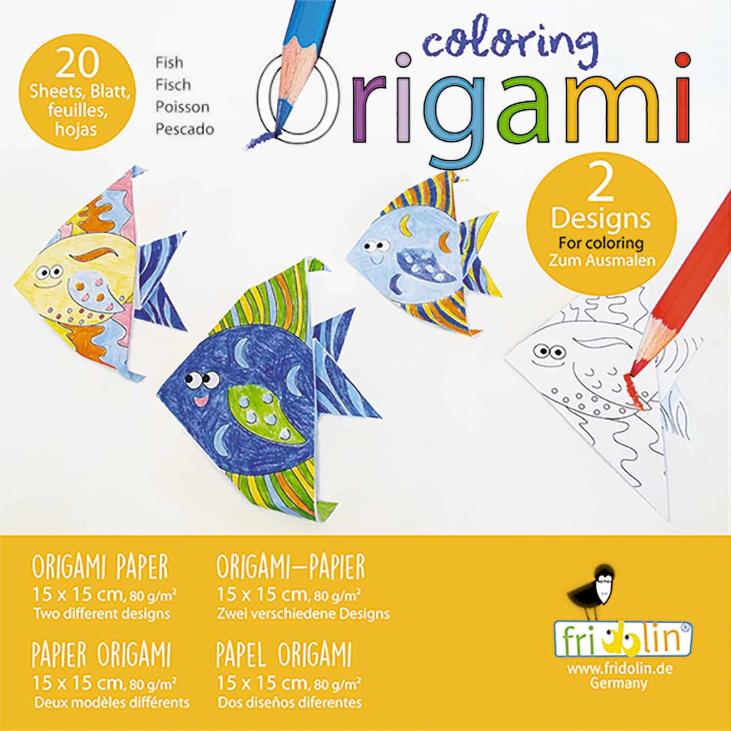 Upptäck lugnet i varje vikning och den kreativa friheten i varje färgstark detalj med Fridolins exklusiva origamiförpackning “Coloring Origami Fiskar”!