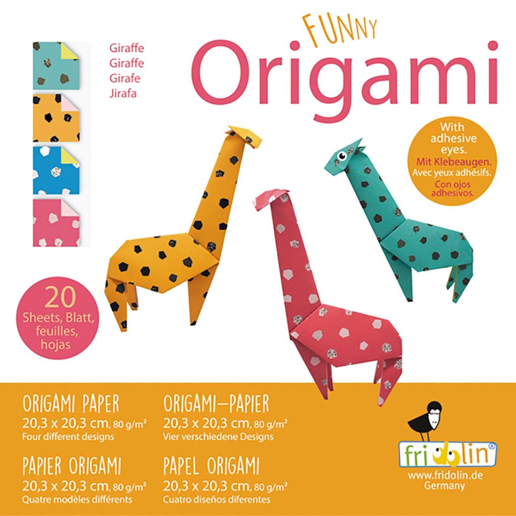 Upptäck magin med Funny Origami – Fridolins exklusiva origamisats som förvandlar enkla pappersark till livfulla och charmiga giraffer! Perfekt för kreativa själar i alla åldrar, från nybörjare till vana pysslare. Med varje sats får du allt du behöver för att skapa, leka och dekorera: