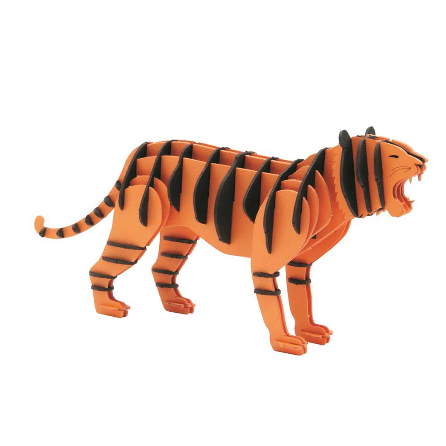 Vik, tryck ut och fäst ihop de förpräglade delarna i rätt ordning – inga saxar eller lim behövs. Steg för steg växer Tigerns kropp fram; Där varje del är noggrant utformad för att ge realistiska konturer av päls, ansikte och ben.